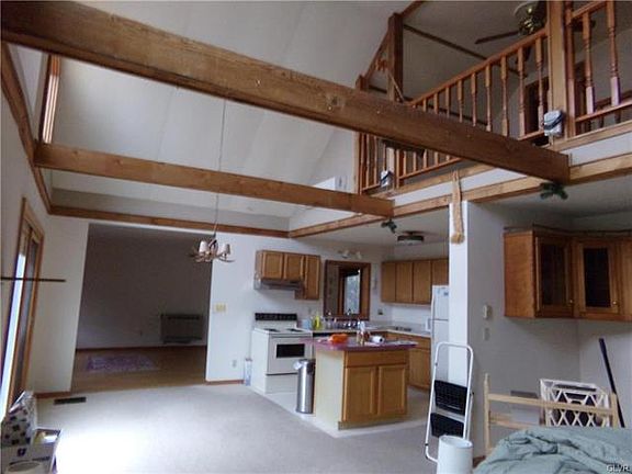 Make your appointment today for this wonderful 3-4 bedroom/3 bath Chalet featuring a brand new deck located in Sierra View community, Chestnut Hill Twp. Updated air conditioning. Huge wrap around deck for personal or party entertainment with great views for all. This home features open concept living room & eat-in kitchen with wood beams & 16 foot cathedral ceiling. Spacious dining room provides ample room for entertaining. 2 bedrooms & 1 full bath on first floor. Upstairs opens to a loft area (12 x 8) leading to a bedroom with bath & private balcony overlooking the woods. The majority of the basement is finished with pellet stove, house humidifier & separate full bath can be used as family room or extra bedroom. Separate (10 x 9) room for??? An oversized 2 car detached garage & paved driveway. A piece of Pocono Paradise you can't miss. Call for your showing today!