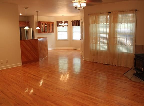 Seller had this beautiful Ranch home built. It is nestled on 5 acres and sits 250 feet from the road. Offers 3 bedrooms, 2.1 baths, large entry (10x6), and a 3 car garage with 9' wide doors. Gorgeous hardwood flooring through out except for Kitchen, baths, laundry room and entry which offer tile flooring. Master Bedroom has a walk in closet. Eat In Kitchen and a Formal Dining Room or could be used as a Great Room. Laundry Room is 11x7 and has built ins and a sink. Interior has been recently painted. All electric home sits on treed acreage where you can enjoy watching wildlife either from your front yard or sitting on your covered deck that walks out from the Kitchen Living Room area. Basement is unfinished waiting for you to finish to your liking. Roof appx 7 years with newer gutters and gutter guards. Vinyl windows. Attic fan. 200 amp service with plug at service panel for generator. Subdivision is North of 50 Hwy or 10 miles South of I-70, East side of Z Hwy.
