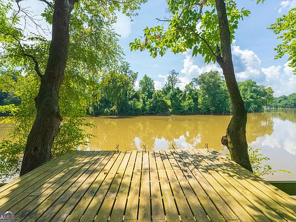 Shall We Gather at the River? Tucked deep in the woods on the banks of Georgia's storied Flint River, this one-of-a-kind cabin estate invites you to do just that-gather, connect, and slow down in a place where time seems to stand still. A thoughtfully curated retreat built with intention and care, this custom home is rich with handcrafted details and legacy materials, including black walnut from a family tree that once stood tall on the owner's ancestral land. Its spirit lives on now in the window sills, mantels, trim, and custom shelves that grace this home with warmth and soul. Step inside to a soaring great room with massive vaulted ceilings, exposed antique pine beams, and a gable peak accented by vintage tin reclaimed from the family's blacksmith shop. Wood walls, chink board siding, and tongue-and-groove finishes set the tone for an all-wood interior that feels both rustic and refined. A dramatic double-sided fireplace features gas logs on the great room side and an open hearth on the massive back deck-perfect for gathering around in any season. The kitchen blends charm and function with off-white soft-close cabinetry, marble countertops, an eye-catching backsplash, and a custom buffet bar that opens to the great room. High-end Bosch appliances include a gas cooktop (fueled by a buried propane tank), convection oven, and dishwasher. A large picture window above the sink looks out over the front yard and forest beyond-mirrored by a matching bank of windows in the spacious laundry room. The laundry space also features built-in cabinetry, room for furniture or heirloom pieces, and a convenient outside entrance. Designed with generations in mind, the home includes a whimsical bunk room with four built-in "cubbies," each equipped with its own reading light and charging station. For the grown-ups, the primary suite is a serene riverfront sanctuary featuring a wall of windows and glass doors opening to a private screened-in porch-perfect for morning coffee or evening wine. The suite also includes a custom trey ceiling inset with rare Pecky Cypress, a spa-style bath with heated tile floors, a walk-in shower, and a live-edge double vanity topped with stone vessel sinks. The oversized walk-in closet adds function without sacrificing style. A nearby guest room offers a similar breathtaking view of the Flint River and easy access to the back deck-ideal for guests who want their own slice of morning sun or evening breezes. Adjacent is a secondary bath that continues the upscale rustic theme with a beautifully tiled shower accented by a turtle tile ribbon, a ceramic tile floor, and custom black walnut shelving. Fiber optic internet keeps you connected for streaming or remote work, while behind the scenes, thoughtful infrastructure includes spray foam insulation, an Energy Recovery Ventilation (ERV) system, and two electrical meters-including an additional panel at the pole barn. A 30-amp RV hookup adds even more flexibility. A concrete-reinforced safe room beneath the screened porch offers peace of mind and houses additional storage systems. The massive back deck is a signature feature-partially covered, with wire railing, cedar log posts, and a wood-burning stone fireplace. Grandkids played cornhole here for hours while adults gathered around the fire or soaked in the hot tub under the stars. A lighted path leads to the private dock, while outbuildings offer room for kayaks, tools, and gear. A fenced garden area includes blueberry bushes, raised beds for vegetables, and wildflowers-with fig bushes and scuppernongs growing just outside the fence-along with an outdoor shower for rinsing off after a day on the river or in the garden. Set on a double lot totaling nearly 12 acres of peaceful serenity, this is not just a home. It's a life-changing collection of elements-a handmade legacy steeped in memory, intention, and joy. A sanctuary. A place to gather at the river and write your own story.