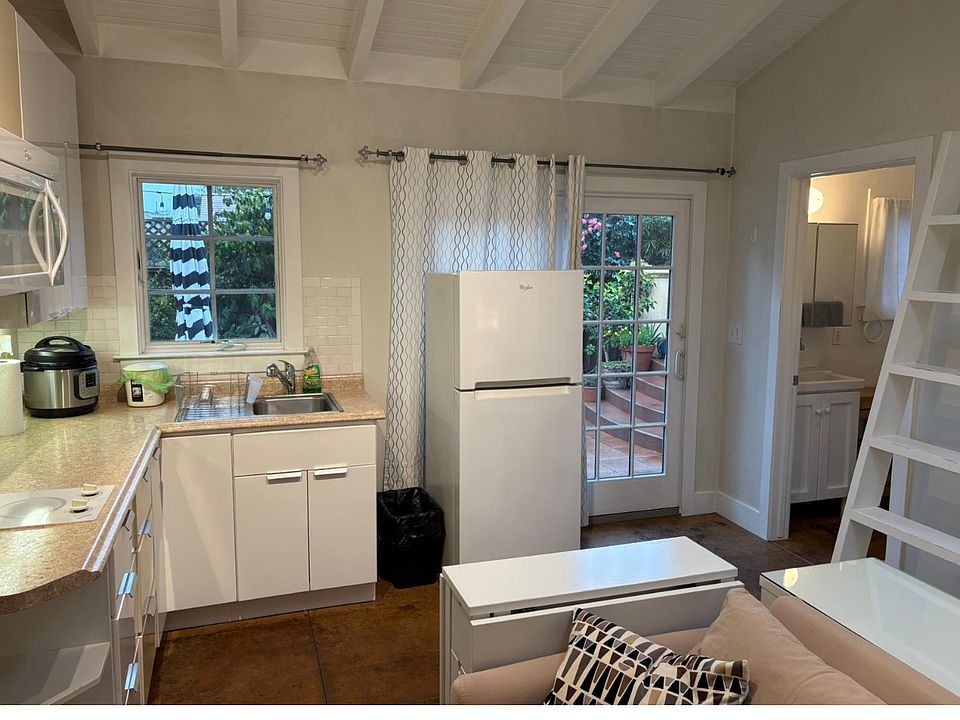 Beautiful, fully furnished studio cottage in courtyard setting. Light filled and immaculate. Ready to move in today. Private entrance. Includes utilities, garbage, water, electricity and heat. Sleeping loft. Kitchen with stove, microwave, refrigerator. Sheets, towels, dishes, glasses. Safe, quiet neighborhood. Close to BART, bus and UC Berkeley. No smoking