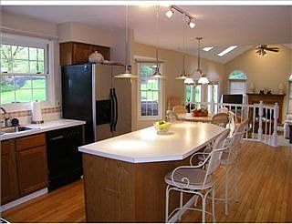 Beautifully maintained inside and out! Covered porch with swing opens to the two story entry with ceramic tile flooring. Open living and dining rooms ready for entertaining. Center island kitchen boasts hardwood flooring and newly updated lighting. Bright breakfast bay opens to rear deck. Sunken family room w/vaulted ceiling, skylights,gas log fireplace and dual atrium doors to deck. Main level den with built-in bookcase. Vaulted master suite offers abundant storage space with both walk-in an...