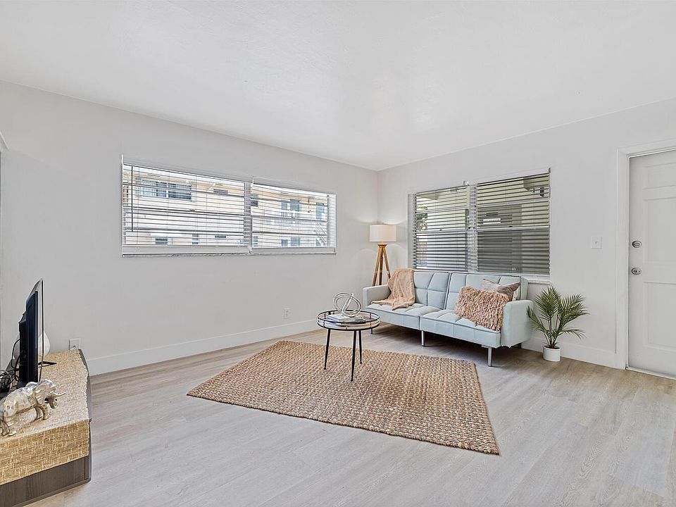 Discover luxury living in this East of US1 unit, boasting a private parking courtyard and a charming porch that sets the perfect scene for relaxation. The property offers the convenience of on-site laundry facilities, and each unit is equipped with central air conditioning for optimal comfort. As you step into the unit, you'll be greeted by a spacious layout adorned with high-end luxury wood-style flooring. The kitchen is a culinary masterpiece, featuring expensive quartz countertops and European fixtures, complemented by stainless steel appliances that add a touch of modern elegance. The bathroom is a sanctuary of deluxe design, showcasing all-new fixtures that elevate the space. With four closets, including generously sized bedroom closets, storage is abundant, catering to your organizational needs. The sleek LED lights and meticulous attention to detail throughout the unit create an ambiance of sophistication. Don't miss the chance to make this exceptional space your home schedule an appointment to tour this remarkable unit before it's gone. 7 month leases or longer are permitted. Owner pays for water heating, trash and community light.