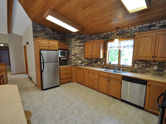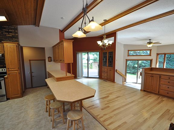 OPEN HOUSE SUNDAY, JANUARY 13, 1 pm - 2:30 pm. Spacious custom built 4 bedroom, 3 bathroom ranch with a unique floor plan like no other! See to appreciate this bright open floor plan home featuring a sunken living room sun room. You'll love the angled rooms, exposed brick kitchen, center island, hard wood flooring, cathedral beamed ceilings, numerous built in cabinets and desk, and so much more! There is a master suite with 2 closets along with 2 additional bedrooms and bathroom on the main floor. The basement retreat has a walk out to the concrete patio, bedroom, bathroom, a sitting room with brick fireplace, large family room, and 2 other multi purpose rooms! Take one of the 6 sliding glass doors to the multi level deck or patio to enjoy the outdoors! See to appreciate this home!