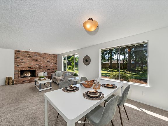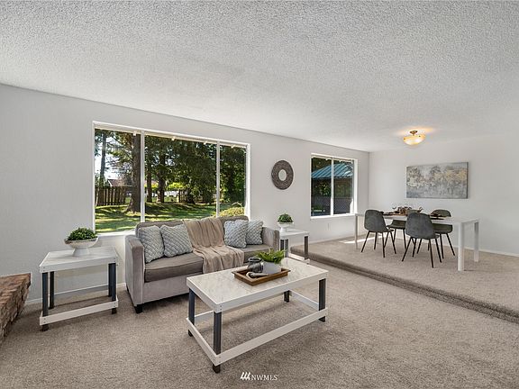 This charming ranch-style home is ready for you! Situated on just under 3/4 of an acre; this home has a farmhouse feel as you walk through the double doors. Bright, & spacious w/ 3 beds & 2 baths. The formal dining/living rooms are open concept & include a beautiful brick fireplace. Large family room includes a free-standing wood stove, a wet bar perfect for entertaining & sliding doors to the deck w/ a hot tub & gazebo! Primary bedroom has a private 3/4 bath & walk-in closet & slider that open to a patio. The yard is full of mature landscaping, making it perfect for summer. Ample parking w/ an oversized 2-car garage, & a paved driveway that has room for extra parking or RV. Located near JBLM, PLU, & shopping. Get it before it's gone!