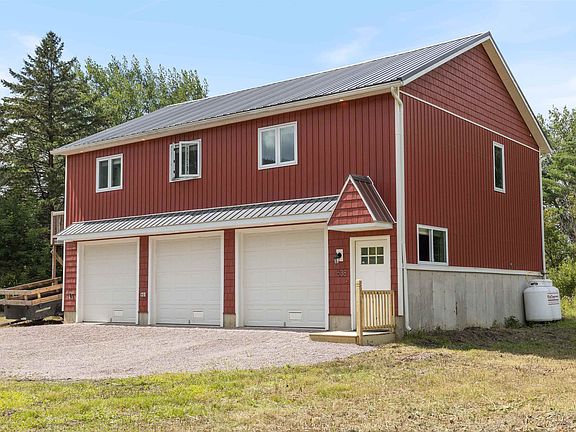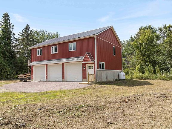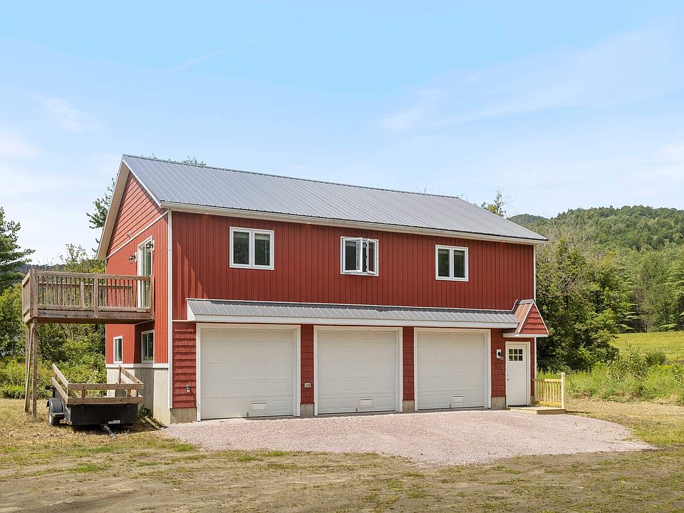 High quality new construction is just a few years old, ideally located just 2 miles north of Waterbury village. The first level is a huge 28.5’ x 34.5’ 3 bay garage, with depth sufficient for workshop space for tool organization for hobby or trade, and a ¾ shop bathroom. Electric openers with MyQ connectivity via smartphone app. Potential for home occupation, by permit. The second level plays on the old-fashioned carriage house model, offering an open and modern layout with high cathedral ceilings adding immense volume to the space. Hardwood and 24x24 tile span the main living spaces. Quality painted cabinetry features dovetail and soft close drawers, quartz counters, and quality deep stainless double sink. Quality stainless appliances include a gas oven with modern hood vent and stack for ventilation, with tile spanning two walls. Laundry, utilities, and a full tiled bath are located off the kitchen. A rear deck off the kitchen faces west for sunsets. The primary bedroom includes a private ensuite tiled bath with custom tiled shower and pebble floor, east facing windows for morning light, and a private deck. Above the bedrooms is a 12x24 storage loft featuring hardwood flooring with access by an elegant hardwood staircase with wood banister . Easy access to great skiing at Bolton, Stowe, Mad River, and Sugarbush. See 3D Virtual tour.