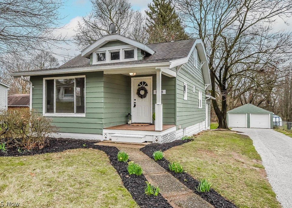What a charmer! There's so much to love in this nicely updated Ellet Cape from the sun filled living room to the inviting dining room accented by an arched doorway and built-in corner china cabinets. The kitchen is a dream with wonderful white cabinetry, quartz countertops and stainless steel appliances. Step down to the vaulted family room with beamed ceiling and patio door access to the backyard. There's also a desirable 1st floor master bedroom complete with its own full bath with a gorgeous tiled shower. There are two more newly carpeted bedrooms as well as another remodeled full bath with tub/shower combo. Outside, enjoy the partially fenced backyard with mature trees, a shed and a detached two car garage with new overhead doors. With updates that include a new furnace, A/C, flooring, paint, light fixtures, kitchen, bathrooms, porch and most windows, this home is a must see, call today!