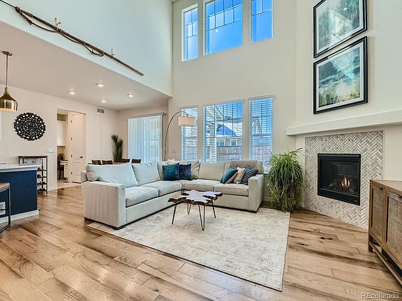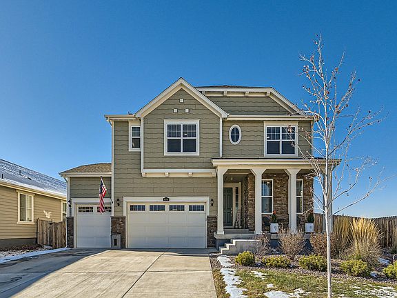 This home is in pristine condition and ready for you to make it yours! Functional and elegant floorpan. The main floor has all hard flooring to keep things neat and tidy. The kitchen is immaculate and features white cabinets, quartz countertops, stainless steel appliances, large pantry, kitchen island, gas stove, eating space and a bonus pocket office or drop zone. The family room is large and cozy with a fireplace perfect for those cold Colorado Winters. The main floor has a large office that can also be used as a 5th bedroom. The second story has a large primary bedroom with lots of natural light, walk in his and hers closets and 5 piece en suite bathroom with large soaking tub. One upstairs bedroom has its own en suite bathroom and the other two bedrooms share a Jack and Jill bathroom. Laundry room is conveniently located upstairs. Beautiful mountain views are visible from the second story. Generous backyard with covered deck; perfect for your Summer gatherings. Also has a 4 car garage to park all your vehicles and toys complete with an electric car charger! Large unfinished basement is ready to be customized to fit your needs. Convenient access to I-25, E-470, Costco, The Orchard Town Center and Denver Premium Outlets. Start the New Year off right in your beautiful new home!