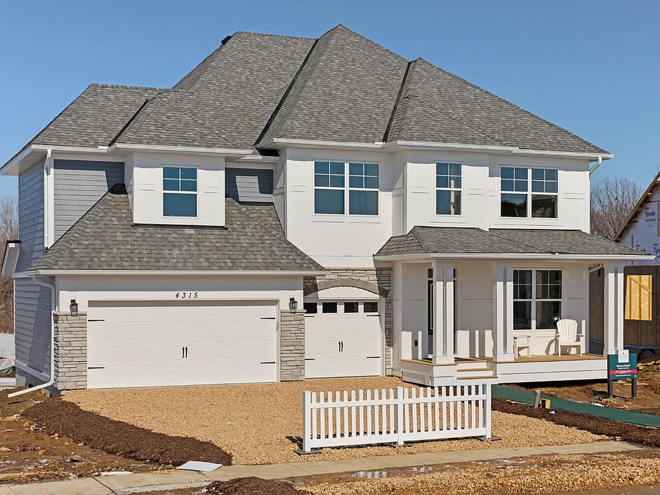 Modern architect-designed two story farmhouse with full front porchMultiple elevations options in LP SmartSide® prefinished siding with 4-sided architectural detail, including wrapped windows and trim boardsSpacious gathering room with fireplace and optional built-ins opens to informal dining and kitchenFormal dining room or optional flex room off main foyer entryLight-filled kitchen features wall of windows, abundant cabinetry, large center island with sink, walk-in pantry, and optional wine barOptional deck or patio off kitchenMain floor resource area adjacent to gathering room with optional built-in deskRear mudroom with optional built-in benches features large walk-in closet and half bathGenerous owner's bath features soaking tub, separate vanities, linen, soaking tub, separate shower, and large walk-in closet with windowOptional owner's bath with freestanding tub, walk-in shower, and dressing tableFinished staircase to lower level with space for future family room, bedroom, bath, and storage room*Home prices refer to starting from price and do not include optional home elevations, options, upgrades, or lot premiums. Prices, square footage, and availability are subject to change without notice. Photos and/or illustrations may not depict actual home plan configuration. Features, materials and finishes shown may contain options that are not included.