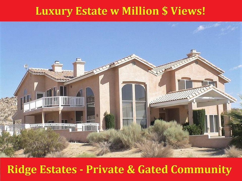 IMPRESSIVE Home with the One of the Grandest Million Dollar Views of any Luxury Estate Home in the High Desert! Located in the Exclusive Gated Community of Ridge Estates. Impressive 5bd (one bedroom on lower floor) with Library/Bonus/6th Bedroom), 6 bathrooms, 4 car garage with Room for RV Parking, 4310 sqft, Wet Bar, 4 Fireplaces with an Unbelievable Location High on the Hillside against Picturesque Mountain Rock Backdrop. Bring the Kids and Dogs for those Great Family walks with Great Hiking Trails. After that Hike, enjoy a Relaxing Time watching the Sunset from this Impressive Home. This Luxury Home has New Appliances, Fresh Paint, New Carpet, Ceiling Fans in all Bedrooms and more. Approx 12 min to Apple Valley Airport. Don't miss this opportunity for Rare Find in one of the Best Gated Communities in Apple Valley. Buyer to Verify all information.