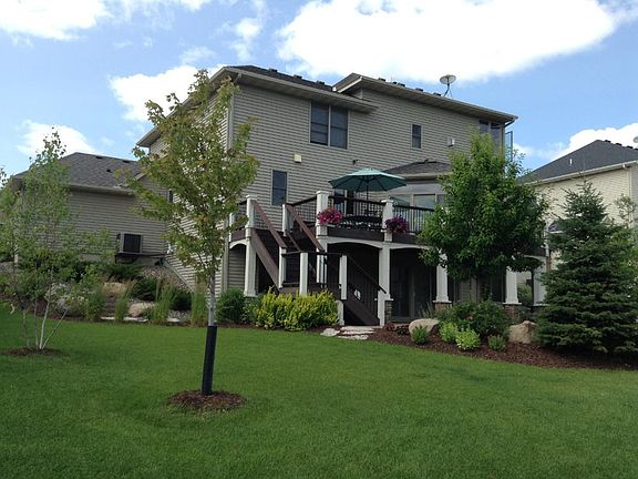 Executive custom built walk-out home on a cul-de-sac in the desired Nottingham Palisades neighborhood. Open floor plan with cherry cabinets, black walnut flooring, bay windows, main fl office with 16 ft cherry shelving, central vac, newly finished basement w/full bar and large media/entertainment area, exercise and 5th bdrm and bath. XL trek deck with extensive patio and fpit below- Landscaped for privacy, concrete drive. Assoc includes 2 community pools and 2 parks with basketball courts.