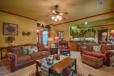 Home on 1 acre MOL! Wooded lot, lots of mature oak trees/park atmosphere, lots of landscape- Open concept home - beautiful wood trim/moldings throughout - Great room has vaulted ceiling, gas f/p - Kitchen has solid surface countertops, abundant cabinets, walk-in pantry, b-bar, eating area - formal dining - master suite has tray ceiling, big bathroom w/ jetted tub & shower, oversized walk-in closet - 4th bed/flex room/study - oversized 3-bay garage - sprinkler system - mounted stand-by power generator- storm shelter