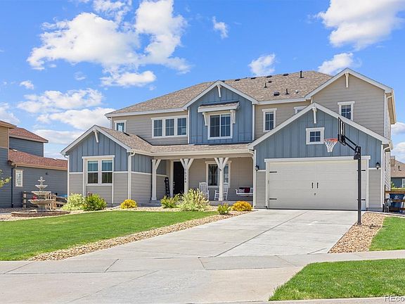 Inside, the home features 9ft ceilings throughout with elegant 8ft doors and large windows that flood the home with abundant natural light. The kitchen is a chef’s dream, boasting ample cabinet space, quartz countertops, stainless steel appliances, a gas cooktop, and a walk-in pantry. Pre-engineered hardwoods cover the entire main floor, adding to the home's luxurious feel. A dedicated homework or craft station provides a space for productivity and creativity. Upstairs you will find a large primary suite, 3 bedrooms, one with an ensuite bath and the other 2 with a shared bath. The spacious laundry room includes a sink and butcher block counters for added convenience. Climate control is ensured with two furnaces and two A/C units, while two hot water heaters provide ample hot water for your needs. This home is a rare opportunity to own a piece of Leyden Ranch, offering luxury, comfort, and a prime location. Don’t miss your chance to experience this exceptional property!