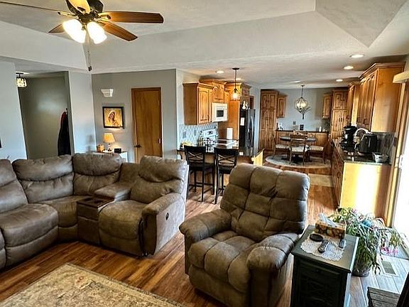 - Ceiling Fan(s), Custom Cabinets, Kitchen Island, Stained Cabinets