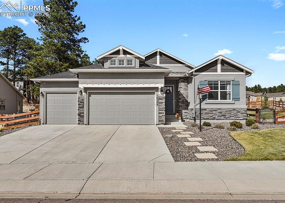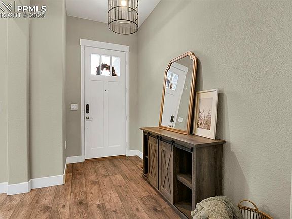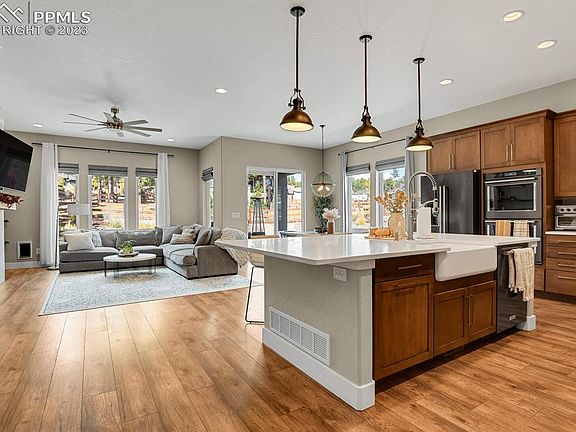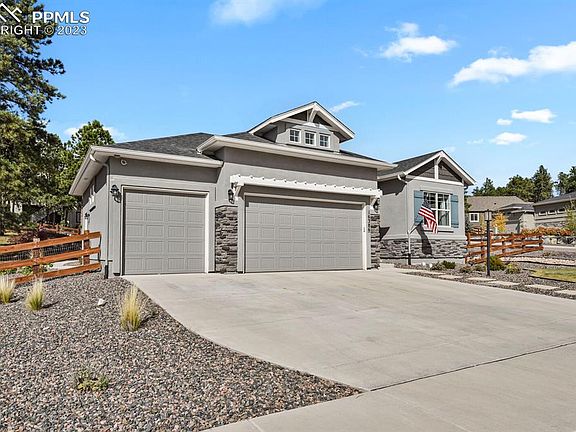 Expertly crafted home on a cul-de-sac, .39 ac. corner lot. The home combines timeless elements w/modern influences creating a chic & upscale aesthetic. Expansive backyard & towering pine trees surround covered & open outdoor living spaces. Choice design options makes this a truly exceptional home. 10ft ceilings, 8ft doors, luxury vinyl floors, walls of windows & gas fireplace complement the scenic setting. The Chef’s Kitchen is equipped w/quartz counters, extra-large island, expansive walk-in pantry, upgraded lighting, classic wood cabinetry with 42” uppers, soft close pullouts & a suite of choice black stainless-steel appliances including a 5-burner gas cooktop. The master suite includes lg. windows overlooking the backyard; the master bath features a spacious, frameless shower, dual vanities w/quartz countertops, a massive walk-in closet that opens to the walk-thru laundry/mud room. A 2nd large bdrm and separate bath, a spacious office/study with custom barn door which could serve as a formal Dining room or possibly a 6th bdrm, round out the first floor. The lower level offers 8.5’ ceilings, plush carpet, a 2nd gas fireplace, large family room, 3 additional bedrooms, two with large walk-in closets, & one full bath. A wet bar has been roughed in by the builder. An intercom system is featured throughout the home. Outside, enjoy the "Colorado Dream" with professional landscaping, hot tub, partially covered patio & a built-in fire pit. Extra-large finished three-car garage featuring tall ceilings as well as an automatic, upper storage rack. All of this in one of the most desirable neighborhoods w/open spaces, community events, extensive trail system that leads to Fox Run Regional Park. This home is located within minutes of the Air Force Academy, an abundance of shopping, dining & easy access to I-25 for an easy commute to Colorado Springs, Denver and more. Home is available to close 12/8/22.