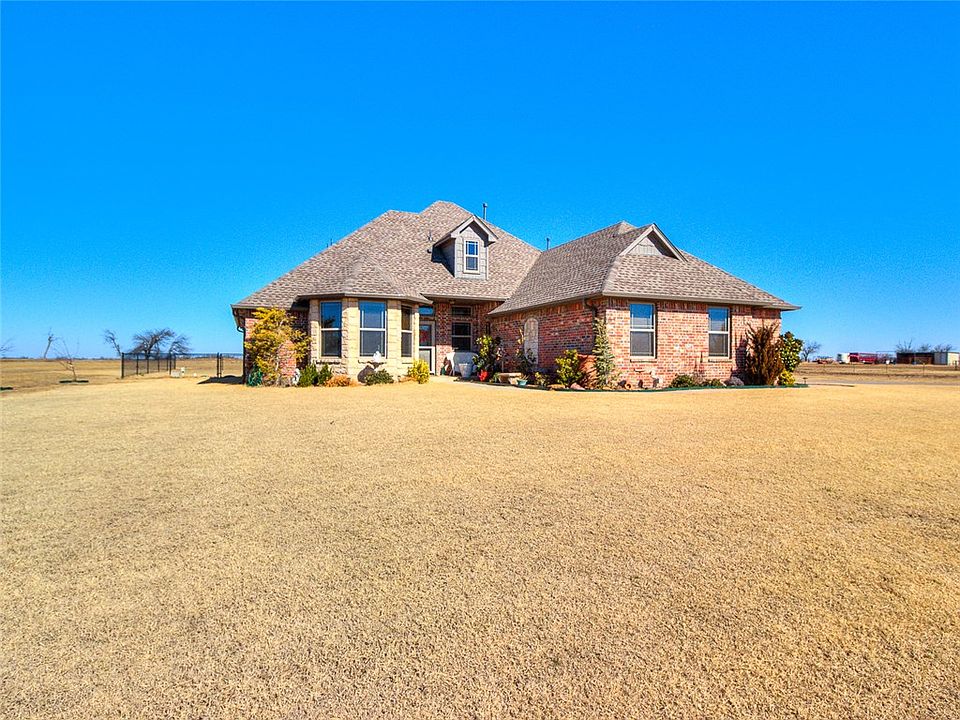 This beautiful home sits on a 2.5-acre lot in Gregory Estates, where you can enjoy plenty of privacy living! 4 bed, 2 baths 4 bedroom can also be a study. Some farm animals are allowed on the property. Granite counter-tops in kitchen and bathrooms with tile in living and kitchen. This home has an open floor plan great for entertaining, home also comes with a storm shelter in garage, decked attic, and water softener. Home uses propane to heat and aerobic septic system. This property is located near Yukon and Mustang. HOA restrictions and covenants are uploaded for more details. The property is only 5.0 miles from Cemetary Road. Kids will attend Banner Schools until 8th grade and then should be able to attend Yukon or El Reno school, Buyers to verify school information. (Property IS NOT located inside El Reno city limits, just El Reno mailing address)