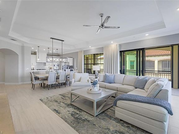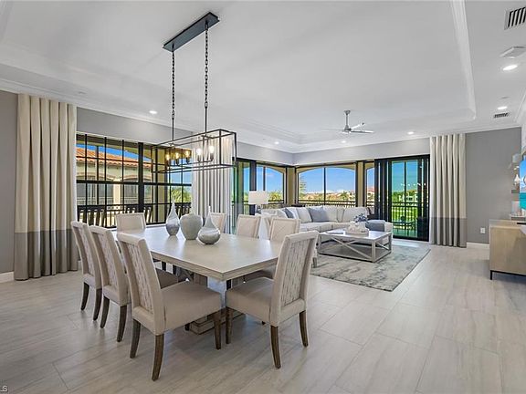 This exquisite penthouse condo in Viansa, offered fully furnished and styled by the renowned Cardamon Designs, features a chic neutral palette with coastal touches. The kitchen boasts natural gas cooking, a warming drawer, and an elegant waterfall quartz island. Luxurious upgrades include plantation shutters, tile flooring throughout, customized closets in both the primary and guest bedrooms, and motorized storm screens on all loggias. From this top-floor haven, enjoy picturesque views of the lake and golf course, recently redesigned by golf legends Greg Norman and Pete Dye. It comes with two ground-level assigned parking spaces, extra private storage, and golf cart parking. Conveniently located near the Sports Complex, which offers a lap pool, grill, and courts for Bocce, Tennis, and Pickleball, all within easy reach of the south entry gate. The Vyne House Clubhouse, awarded Clubhouse of the Year in 2016 by Golf Inc. Magazine, features the Core Fitness Center, Esprit Spa, and Fiona’s Market Café. A Sports or Golf Membership is required for purchase, urging golf enthusiasts to secure their membership promptly to avoid the growing waitlist.