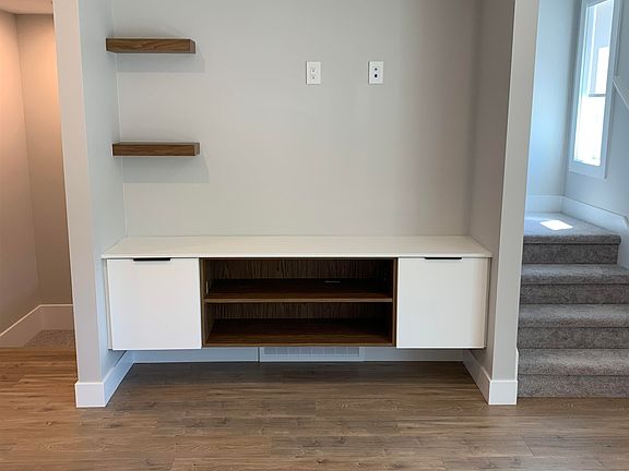 Custom upgradesBuilt-in entertainment centerSubway tile in bathroomsNew appliancesGas rangeDining roomHalf bathroom