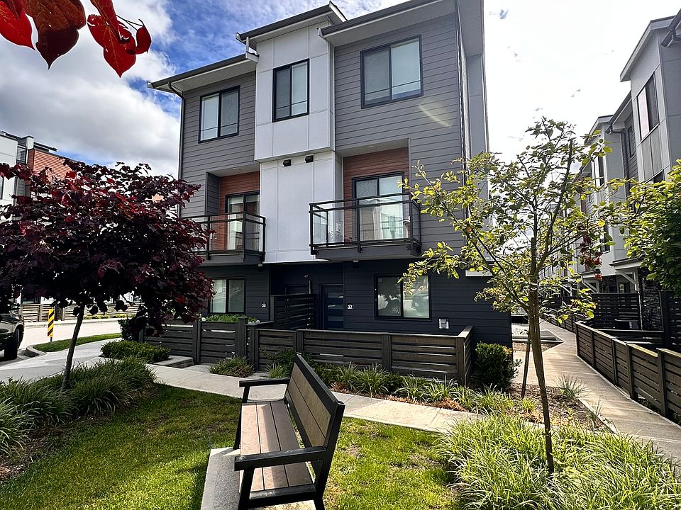 Beautiful 3 years old townhouse in South Surrey, just minutes to White Rock Beach! This CORNER unit home has three bedrooms and 3 bathrooms, a roomy layout with lofty 9-foot ceilings that fill the home with natural light and create an airy ambiance. Enjoy the luxury of premium stainless-steel appliances and resilient plank flooring in the kitchen and living areas. The bedrooms are generously sized, featuring a walk-in closet in the master bedroom and ensuite bathroom. This South facing unit is flooded with natural light through its expansive oversized windows and overlook small green space. Patio BBQ hookup, EV charger, Easy access to Hwy 99, US border and White Rock. Very clean, move into this like new townhome in the thriving South Surrey/White Rock area. Please contact Jane by email or phone to schedule your visit.