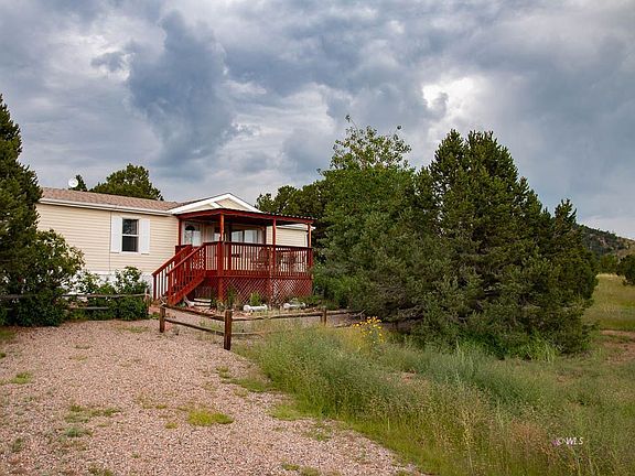 Have you ever wanted a MOUNTAIN HOME with a GUEST HOUSE OR "SHE-SHED"? Look no further! This 1512 sq ft. 3 bedroom 2 bath home has an additional 490 sq ft. "fixer upper" cabin just waiting for your finishing touches. The HOME boasts an open concept kitchen-living-dining room, a master suite with walk in closets and garden tub. Two additional bedrooms and another full bath make this little gem move in ready! Large windows and vaulted ceilings give the home an open air country feel. The yard is partially landscaped with wild flowers and perennials, mature trees, aspen, a greenhouse and fencing for your pets. Storage is no problem as there are 3 additional sheds, a carport, and a detached 2 car garage with heated work shop. The guest house is an original family cabin that has been maintained. The current owner has stripped the interior while saving the fireplace and mantel to maintain the woodsy charm. Electricity and some plumbing fixtures are also still in place. This little jewel is just waiting your custom finishing touches. Property is located on 5.35 acres with NO HOA. Peek a boo views of the Sangre de Cristo mountains complete the package.