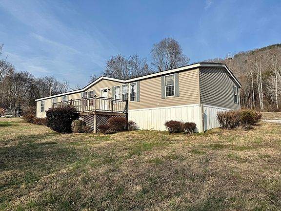 Wake up to the soothing sound of flowing water and nature! This manufactured home is located perfectly outside the city on 1.5 acres of UNRESTRICED land, just far enough from the city but close enough to be convenient. With decks on both the front and rear, you are sure to enjoy the mountain views and sound of nature all around. The home features 4 bedrooms, 2 baths, a bonus room, 2 year old HVAC, updated roof, and has recently connected to city water. Come make this home your peaceful retreat.