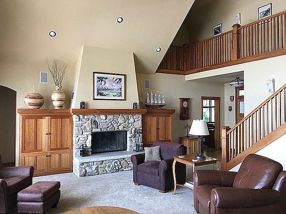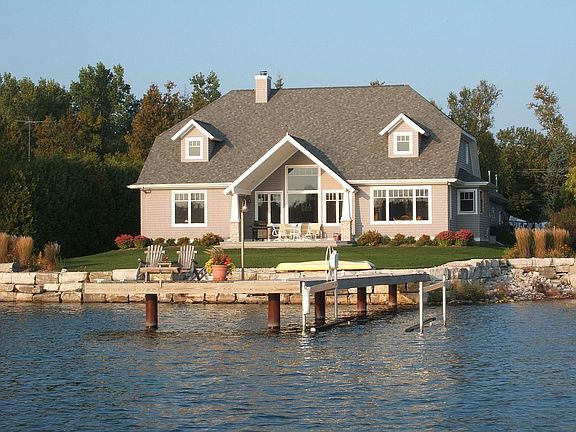 SOLD.....We have 102 feet water frontage for activities on Sturgeon Bay waters!! Beautiful American Craftsman-style house was constructed in 2005 on impressive waterfront property. The open concept design has a large gourmet kitchen w/ island seating also large dining room, great room with many custom windows for viewing expansive water views and eagles to Great Lake freighters. This gorgeous house was built as our dream home with numerous upgrades during the entire construction phase. All wood work through the entire house are beautiful very expensive Wisconsin cherry wood; all trim, doors, detail cabinetry, and custom cherry staircase & railing. Numerous built-in cabinets & lockers & dressers throughout the entire house. Kitchen has upgraded cabinets with custom flush mounted doors with beautiful granite counter-tops and two sinks. Custom weather station and many more upgrades. The two story great room has newer TV, surround sound stereo, and a house speaker system. Includes all the stainless steel appliances; the dishwasher, washer & dryer are brand new. Large wood burning fireplace, featuring beautiful Door County field stone, seating hearth & cherry mantel with natural gas log starter. The kitchen, dining room, hallways, 1/2 bath, and laundry have red birch wood flooring with carpet in bedrooms and tile in bathroom. Total living space is 3050 sq.ft. with finished three car garage & shop and bonus expansion space above the large garage. The house is a passive solar design to capture the southern sun warmth during the winter months with summer shading and minimal north facing windows. Very efficient home with low utilities bills. Tastefully landscaped private yards, large covered deck facing the water with NG grill hookup. Front entry covered porch with flagstone in facing the woods. Large rock stone shoreline protection and your private permanent 70 feet long dock pier with electric & lighting, which will handle a yacht for docking. The large placed stone shoreline and our permanent dock are special & limited to build in Door County. House Layout: 1st floor has vaulted great room, large kitchen, dining room, master bedroom w/walk-in closet & bathroom suite, office, ½ bathroom, spacious laundry & pantry room, & mechanical room. 2nd floor has additional full bathroom, (2) bedrooms & family/media room or fourth bedroom, and unfinished 700+ sq. ft. bonus room/attic above the garage. Heavy duty structural building standards throughout the house with 2 x 6 x 9 feet high wall construction. The attics are super insulated, also the 1st floor ceilings are insulated for sound control. The garage and shop are insulated with separate NG heaters. The HVAC system; it is a high-end Lennox unit with a vari-speed fan system and 3-zones; the 1st floor main living space, master bedroom suite, and the upper 2nd floor. The hot water system is a tankless heater with a circulating pump for energy efficiencies and hot water comfort at all times. Do not run out of hot water! Electrical wiring with communication cable throughout the entire home with a house music speaker system. The exterior siding, trim, and soffits are maintenance free; vinyl, plastic boards, and aluminum. Finished with masonry stone column bases and fiberglass arts & craft columns. Large maintenance free deck. All the windows are Marvin high efficient with grill panes. FOR YOUR PRIVATE SHOWING - PLEASE ONLY SERIOUS BANK APPROVED INQUIRIES ONLY AND PLEASE E-MAIL FIRST macwag@charter.net and second our phone number is (920)-743-1923 ....THANK YOU :)