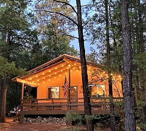 Tucked away on a quite street surrounded by tall pines, oaks and Aspen you will find this beautiful cabin in the woods to call your own! Metal copper roof, wood floors, vaulted tongue-n-groove wood ceilings, granite counter tops, heated slate floors in the bathrooms, solid interior doors and a fenced backyard is just a start! Come enjoy the cool breezes on the oversized front porch or enjoy the side porch for morning coffee. Take a leisurely walk through the neighborhood enjoying the wildlife and meeting new friends. No HOA is a bonus. Comes furnished for a true turn key property.