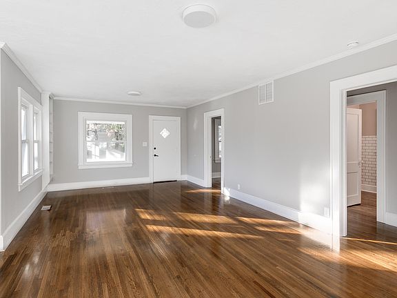 Completely remodeled home in Rountree Elem. school district! Offers gorgeous hardwood floors, crown molding, fresh paint, living room with dining area. Kitchen has beautiful white cabinetry, new granite counters, subway tile back splash and dishwasher! There is a nook off the kitchen that could be used for dining or office space! Two bedrooms, 1 full bath with new granite, tile with walk-in shower! Main level laundry, enclosed porch and nice basement!! Updates include: new central heat/air that is Lennox dual fuel & 98.6% energy efficient, LED lighting, new insulation, sump pump, board & batten vinyl siding, roof, windows, gutters, soffit, fascia! Nice sized deck out back with detached two car garage, fenced yard with alley behind the home! Won't last long ~ take a look today!