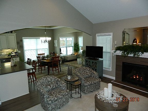Beautiful open concept floor plan finished in 2016, 2 bedrooms, 2 baths, great room with remote start gas log fireplace, vaulted/trayed ceilings and neutral colors throughout along with ceramic tile, laminate flooring, ceiling fans, custom window blinds/shades, black stainless appliances, walk-in shower in the master with small seat, daylight unfinished lower level, constant pressure water tank, 3 car attached garage which has been painted, double pane windows, 10 x 16 covered deck, the amenity and upgrade list is endless. Schedule your showing today.