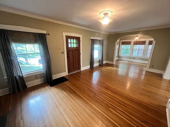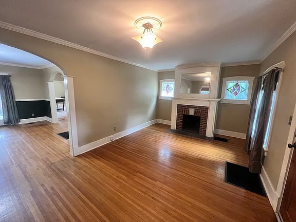 This beautiful Highlands home offers hardwood floors throughout, a spacious living room, and a cozy bonus/den area ideal for relaxing or working from home. The formal dining room easily accommodates gatherings and large meals. The light-filled kitchen features vaulted ceilings, skylights, stainless appliances (range, refrigerator, dishwasher, microwave), a built-in desk, and a banquet-style eat-in area. Upstairs, three bedrooms share a modern full bath, while the finished basement includes a fourth bedroom and additional living space. Both bathrooms have been tastefully updated. Outside, enjoy a private fenced yard, charming patio with trellis, elevated herb garden area, and a detached 2-car garage. Renter is responsible for all utilities and lawncare. Owners pays for trash. No smoking. On street and 2 car garage parking.