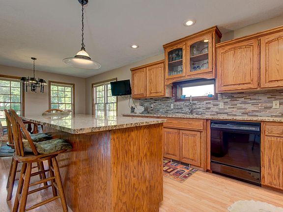 Beautiful home on 5.82 acres, located between Joplin & Springfield with I-44 visibility. Home sits back off the road with trees. Great floor plan with this 3059 sf custom built home, which features 3 BRs, 2.5 baths, a office, 2 living areas, plus a large rec room with bar. Large master suite & bath with his and her walk-in closets, shower, & a jetted tub. Large 3 car attached garage. 40x60 workshop/ garage. This home has been well maintained & shows great! Pella windows new in Sept 2013. New granite counters & tile backsplash in the kitchen in 2015. Wonderful location for a business! Located less than a mile from Exit#33, with I-44 visibility. Easy access to Springfield, Monett, or Joplin. Whole house and water pump automatic propane generators.