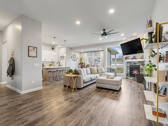 Quality Built Tom Schmucker & Sons Home, offers many exceptional features. The spacious great room has 10-foot ceilings, gas fireplace and oversized transom windows that flow into the spacious kitchen. Here, you'll find custom cabinetry with dove-tailed, soft-close drawers, a large corner pantry, and upgraded appliances, including a convection oven and a dishwasher with a stainless steel tub. The split bedroom design ensures privacy and comfort. The Master Suite has trayed ceiling adding depth with ceiling fan. Master ensuite features a tiled shower, double vanities, and an enormous closet. Additional highlights of this home include Andersen windows, rounded drywall corners, a 50-gallon high-efficiency water heater, and a high-efficiency furnace and water softener. The oversized three-car garage, measuring 25 by 33 feet, includes a window for natural light and access to a floored attic with heavy-duty pull-down stairs. Enjoy outdoor living with a large covered front porch and a covered patio equipped with a ceiling fan. The back covered porch is footered, offering the potential to be screened or enclosed. This home has been grade and seeded and ready for your custom landscape design. Don't miss the opportunity to explore this remarkable property.