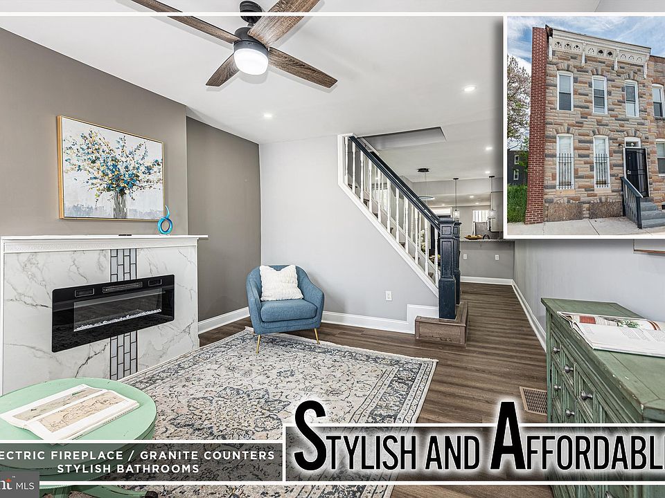 CUTTING EDGE RENOVATION WITH 3 FINISHED LEVELS OF LIVING SPACE! Property has been completely renovated following all Baltimore City permits & codes. Features include wood laminate flooring throughout, an inviting living room with an electric fireplace, a separate dining area, a gourmet kitchen with ss appliances, and granite counters, a Primary bedroom suite with a full bath, and a generously sized 2nd bedroom with a hall bath, a finished basement with a family room and storage space, and a private rear patio! Conveniently located a short walk to Johns Hopkins Hospital. Pack your bags and move right in!