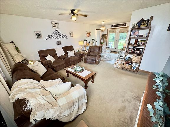 Experience unparalleled multi-generational living and income potential with this stunning one-level ranch. This exquisite home features three spacious bedrooms, two bathrooms, a full open kitchen, a living room, and a dining room. Set on 21 private acres, this property offers a true sanctuary with its serene surroundings. The estate includes a versatile 30 x 40 shop with a studio apartment equipped with a full bath. This space can serve as a lucrative rental unit or be transformed into an ideal mother-in-law suite by adding a kitchenette or full kitchen. The 21 acres, predominantly wooded with 70% timber, boasts two picturesque ponds and a charming orchard with apple, peach, cherry, and persimmon trees, as well as flourishing grape vines. The expansive land provides ample space for a variety of livestock, including chickens (with ready-made coops), rabbits, ducks, geese, cows, horses, goats, or pigs. The stocked pond, featuring an island accessible via a quaint bridge, is perfect for summer swimming or fishing, with an abundance of large fish. Additionally, the garage offers potential for conversion into additional living space if needed. Embrace the opportunity to own this remarkable property, where dreams truly become reality.