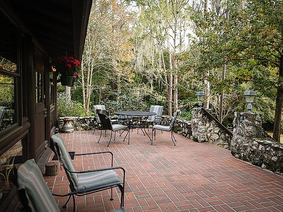 Featured three times over the years in newspapers and magazines, this "one of a kind" cypress log home is on the National Register of Historic Places due to its unique construction. However, there are no restrictions whatsoever on the property; the designation is purely honorific. The main home was built in 1936-37 as the first dwelling in Florida Park. The great room has a Chert stone wood-burning fireplace and is perfect for entertaining large groups. The master bedroom features an impressive picture-window view and includes a modern his and hers bath, laundry room, linen closet, and large walk-in closet. A detached 3-car garage with a home office (or extra bedroom), as well as a storage room, adds privacy and was added in the mid-1970s. The attached guest cottage was totally rebuilt in 2011 and includes a full kitchen. Despite its rustic ambiance throughout, this home is full of modern conveniences, including a four unit HVAC system, two modern kitchens, and redundant security systems (Ring and Vivint). Nestled among mature trees on a large corner lot on a dead end street, it offers unusual privacy. There is a lush, sweeping downhill view from the south side to the "old swimming hole" fed by a natural spring, which in turn feeds into Rattlesnake Creek. A modern swimming pool and hot tub with a gorgeous flagstone deck added in the mid-1960s has been recently resurfaced, replumbed and rewired for safety. On the grounds behind the pool are several mature citrus trees and a shed. Multiple mature camellias and azaleas grace this property. Although this home is not currently for sale, any prospective buyer should value its history and maintain it in perpetuity as a historic Gainesville treasure.