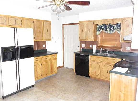 Picket fence.Mature shade trees.Nice big shop.Storm shelter.Vaulted ceilings.Impressive rock fire place. 3 bedrooms 2 down 1 up. Full bath up and a 11x13 landing.Fresh paint. A/C and new carpet in 2011. Side by Side stays.Hardwood under some carpet.