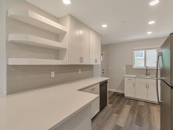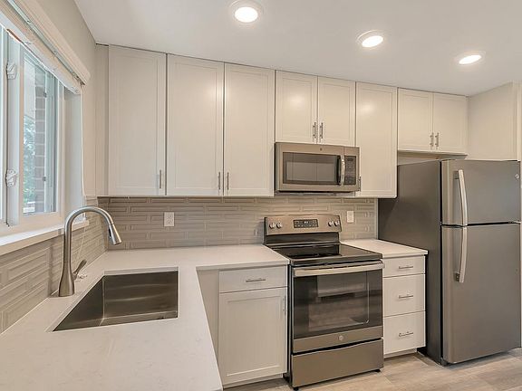 Entirely newly remodeled (new windows, flooring, cabinets, quartz countertops, baths, w/d, appliances, window coverings, and much more)