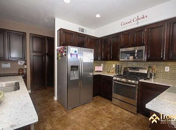 JUST REDUCED and total Perfection! You will love this 4 bedroom 3 bath home located in a quiet family and friendly neighborhood with mountain views, close to shopping, schools, playgrounds and walking trails. Open floorplan with faulted ceilings, newly remodeled gourmet kitchen with quartz counters, upgraded stainless appliances, under cabinet lighting and extra walk in pantry. Newly remodeled bathrooms with granite counters and updated fixtures. One bedroom and bath located downstairs and the rest of the rooms are upstairs. Perfect backyard for entertaining with a beautiful patio that includes canned lighting and tropical ceiling fan perfect for warm summer nights. This home has so much to offer and way too many upgrades to list, you really need to see it to appreciate it! Lowest Mello Roos in Beaumont!
