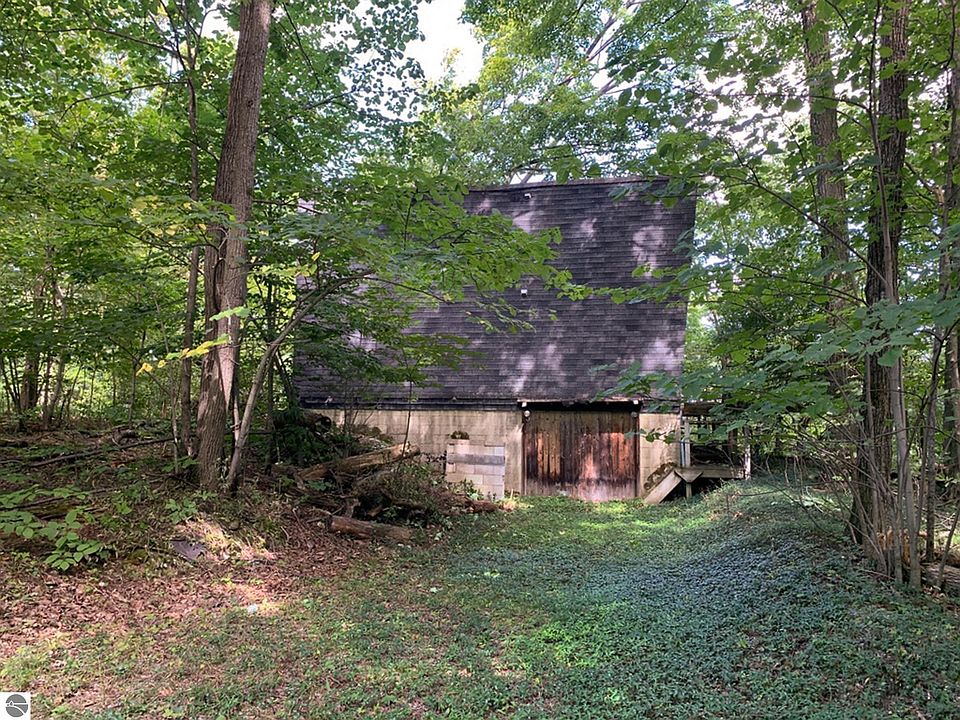 If you’re looking for a project to fix up & rent, flip, or live in, here’s your chance. Perched on a tree-lined ridge, in Leelanau County's center, this circa 1973 "cabin" is in search of skilled hands that can transform what has not been touched for some time into a great Up-North gem. With a footprint of just under 900 sq. ft., this not so big house features a block, unfinished basement with plenty of utility, a main level with "newer" kitchen, full bath with a redwood sauna that was converted into a shower, an adequate bedroom, & a wall of windows beyond the dining/living space that looks out to the forest. Some clearing/limb care will provide some amazing long-distance views of the rolling hills. A tight spiral stairway is your access to the upper level, open "2 bedroom" sleeping loft, & full bath, w/tub/shower. Per county records the septic was installed in '73, the well in '80, & neither have been used/tested for several years but will need to be checked per the county POS Inspection requirements. Ash trees were not kind to a couple areas on the exterior & will be the responsibility of the new owner.