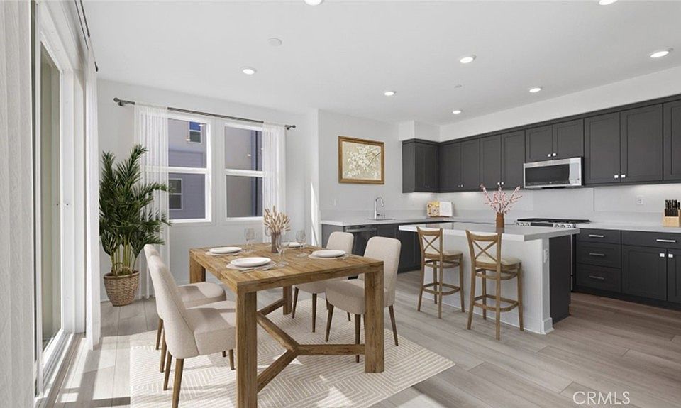 The living space of this three-story townhome starts on the second level, where the kitchen, family and dining rooms share an open floorplan that makes multitasking and entertaining guests a breeze. Sliding glass doors open to an outdoor deck. Two bedrooms occupy the top level, both of which include en-suite bathrooms. Emerald Pointe is a community of new townhomes now open in the city of Anaheim, located in Orange County, CA. Residents will enjoy exclusive amenities including a community pool, dog park and fire pits, while being close to all that Orange County has to offer. Nearby, the Platinum Triangle has shopping and dining, while Disneyland and Angel Stadium provide plenty to do on weekends with family and friends. With close access to the I-5 freeway, commuting to Irvine, Los Angeles and more is made simple.