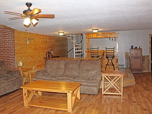 Looking for a home close to town but that has that rustic woodsy feel? Then this house is for you!! Nice 4 BR 2 1/2 BA home with gorgeous custom wood work throughout! Nice family game room that includes pool table and wet bar. There is a balcony from the upstairs bedroom as well as back deck off the game room. Updates to include: two heat pumps, newer vinyl siding, newer range & dishwasher, balcony upstairs, new rails on deck, new light fixtures, new plumbing fixtures in bathrooms, custom cabinets in the kitchen, tile countertops, hemlock wood on the walls in the game room, new flooring, and newer paint throughout. French drain system added to the back of the home. Make an appointment to see this beautiful home!