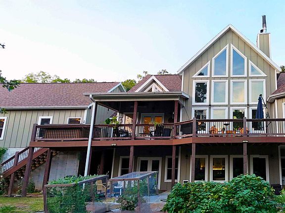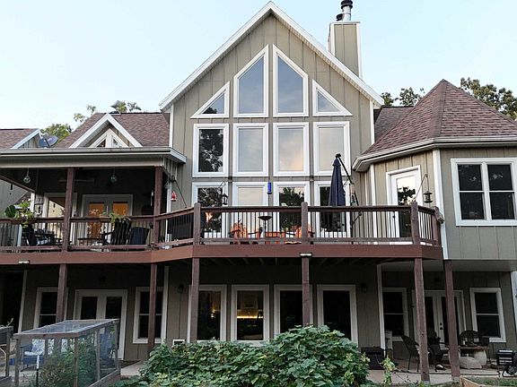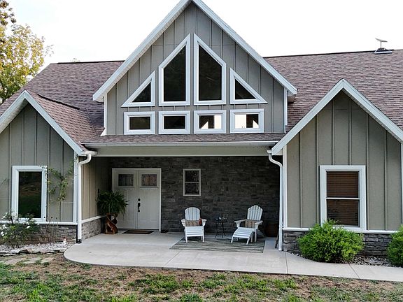 Immaculately designed and built in 2020, this 4,354 sq. ft. ranch-style home sits on 3.6 private acres with walk-down access to the James River arm of Table Rock Lake. Featuring 6 bedrooms (one flex), 4 full baths, and a layout that balances elegance with function. Inside: vaulted ceilings, true hardwood floors, expansive windows, and a breezeway to the upper deck overlooking mature woods. Private well, secluded driveway and Generac generator add a touch of self-reliance & privacy. The chef's kitchen includes granite countertops, a premium farm sink, and top-tier appliances. A sunroom with wood-burning fireplace offers quiet retreat, while the primary suite boasts a spa-inspired bath. The finished basement provides full unit living ideal for guests, in-laws, or close friends. Property is being sold semi-furnished. A 10x28 boat slip is available for additional cost and only a Razor ride away. Luxury awaits you.