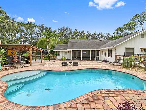 Welcome to your slice of paradise! This exceptional 3-bedroom, 2-bathroom home with a 2-car garage is situated on an expansive 1.28-acre lot, tucked away just off Seminole Pratt, offering easy access and a prime location close to schools. Step into your own private oasis, where a sparkling pool awaits you. The meticulously landscaped and fenced pool area beckons you to relax and entertain in style. Host unforgettable gatherings with family and friends in this idyllic setting, perfect for creating cherished memories. Venture further into the fully fenced yard, adorned with a variety of fruit trees. Imagine picking fresh, juicy fruits to enjoy with your morning breakfast