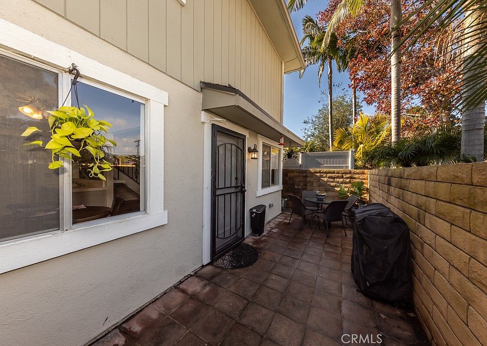 Surf City condo! Close proximity to Huntington Harbour, dog beach and Bolsa Chica State Beach. Approximately 2.4 miles to Pacific Coast Hwy and beach access. Quiet location near the back of the community. Mature trees, side walks and greenery throughout the community. Lovely private entry with brick patio and room for BBQ, outdoor furniture and pet. Two story unit with open and bright floor plan. Two spacious bedrooms upstairs and one remodeled bathroom. Fresh paint first floor living area and kitchen. White textured brick wall and open storage under stairway. Laundry room is outside unit, next to the garage. (shared with 4 units) Two car garage is shared one/half with storage for each owner. Harbor Heights Villas community offers lots of guest parking, community pool, lush walking greenbelts, clubhouse and RV parking space availability through the HOA.