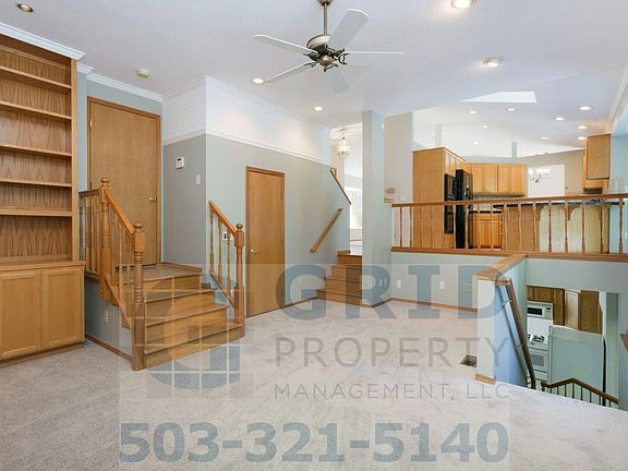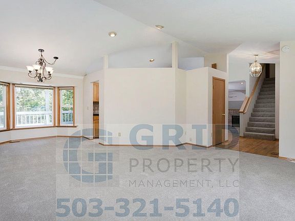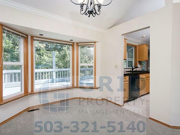 Available from Grid Property Management, LLC: Tucked onto a quiet cul-de-sac in West Beaverton, 16395 SW Newport Place truly is a must-see! This 3 level, 4 bedrooms, 3.5 bath property. This unique property backs to a lush forested green space offering future residents the convenience of city living and a quick commute, with the tranquility and peace that comes with the home's close proximity to nature. The main level of the home hosts spacious open concept living areas. Upon entry to the home, one is welcomed by the large primary living room which contains a bay window, soaring ceilings, and recessed lighting. Off of the homes main living room is a designated dining area that leads to the house's main kitchen space. The main kitchen of the home comes well equipped with granite countertops, a farmhouse-style sink, a breakfast bar, dishwasher, an electric stovetop, and an oversized refrigerator. Down a brief set of stairs from the kitchen is a second bonus living room featuring a fireplace and charming built-in bookshelves. The master suite and two additional bedrooms are located on the third floor of the home. The master suite offers a private outdoor deck, an en suite bathroom, and a walk-in closet. Each of the additional upstairs bedrooms are well-sized with ample closet space for storage. There is a full bathroom in addition to the en suite located on the third floor. The first level of the home is a 'mother-in-law suite' of sorts. The downstairs level hosts the third spacious living area, a full kitchen, a full bathroom, and a single spacious bedroom. Off of the downstairs living room is a sliding glass door to a covered patio area facing the green space. Additional amenities include a double car garage, an additional storage room under the deck, a washer/dryer in unit, additional washer/dryer hookups, and a large outdoor deck. The tenant is responsible for electricity, gas, water, sewer, landscaping, garbage, and all other utilities. $3,300.00 per month, $3,800.00 fully refundable security deposit. To reserve the property, a tenant will be required to pay the household security deposit. The first month will be prorated. Proof of renter's insurance is required before move-in. Cats and dogs 20 lbs. and under are welcome (with exceptions upon landlord review). Maximum of 2 pets with a $35 rent increase per month for each animal and an increased deposit of $35 for each animal. This unit is not an Accessible Dwelling Unit. One-year lease. Non-smoking. Information deemed reliable but not guaranteed.