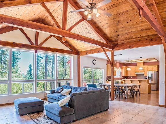 Enjoy this private 8+ acre property just minutes from Nevada City. The 2,442 sf custom home welcomes you as you enter the great room w/ high beamed ceiling & large windows looking out at long range views. Gourmet kitchen has center island w/sink & dining bar plus lots of counter space. Dining area opens to family room w/ sliding door out to the deck. Master suite has walk in closet & master bathroom has double sinks, jetted tub & separate glass enclosed shower. At the other end of the home, there are 3 bedrooms and a full bath with walk in shower. Downstairs bonus area has 2 rooms, cement floors & glass door to the outside garden area and year round pond. There are two buried 1,700 gallon water storage tanks gravity fed to the home plus miner's inch of water from NID w/ more water available. Solar power system & 7,500 watt generator included. With the garden, orchard & the ability to have animals on this Res-Ag zoned property, you can truly enjoy the rural lifestyle.