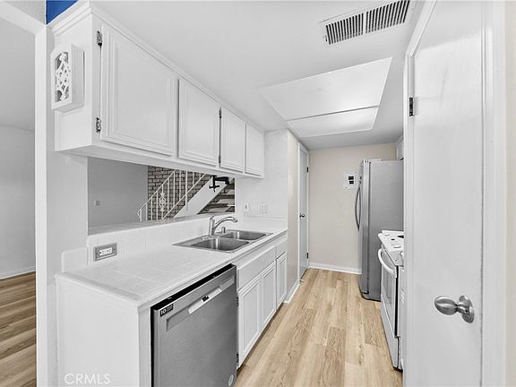 With this Price Reduction, this is really an affordable beach close home for sale in a prime location of Huntington Beach!! Fantastic location in the Huntington Harbour area of Huntington Beach! This inviting 2-bedroom, 1-bath, 2-story townhome is just minutes from shopping and dining with a Trader Joes and Bolsa Chica State Beach. Enjoy ocean breezes from your large, private gated patio, new laminate vinyl plank flooring downstairs, and new carpet upstairs. There are 2 large bedrooms upstairs and the primary bedroom also has a walk in closet!! The bathroom features a stylish barn door and new tub/shower. No one above or below you! The community offers a pool, half basketball court, clubhouse, lush landscaping, and pet-friendly grounds. Garage is right around the corner and if you have a boat or an RV, there is a dedicated parking area for a monthly fee. You also have permitted parking for one other car since the garage is a 2 car shared garage with your own locked closet for your surfboards or more! Yes, you can put in an AC and yes, you can also put in a washer/dryer!! A fantastic place to live - affordable, stylish and close to everything!!