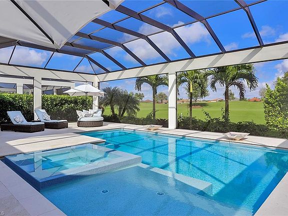 This custom built spacious home in Talis Park is ready for you to enjoy and loaded with extras. As you drive up to this just under 3,200 sq. ft. Three bedroom w/ office home. The homes open floor plan has 14' high ceilings with numerous tray ceilings throughout, detailed molding, 9" base cove moldings and 8' solid doors. The master bathroom with its huge marble carwash shower with marble tile floor to ceiling. The kitchen has double quartzite island counter tops with Thermadore double oven, gas stove top, refrigerator and dishwasher. The oversized lanai overlooks the Talis's pristine golf course which includes a spacious cypress covered lanai with outdoor kitchen, LYNX gas bbq, wet bar and undercounter refrigerator. Salt water natural gas heated spa and pool with auto fill and access control from the web. Lanai storm screen and full impact Anderson windows and doors, security system, cameras, hardwired internet in office, cable and satellite wired, tankless water heater. Must see in person to appreciate the attention to detail.