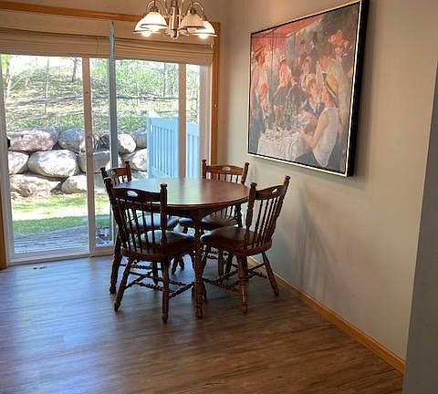 New flooring. Nice patio and view in the back. Close to lots of amenities. Oversized one car garage. Owner pays for water, trash collection. Tenant pays electric, phone/internet and gas.