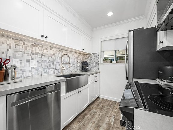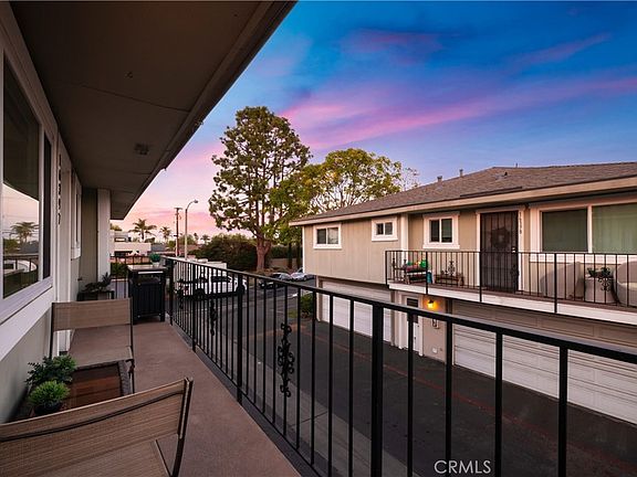 Located just 2 miles from the beach, you can relax on your front porch while enjoying the ocean breeze. This property is perched above your shared garage at the back of the community, offering a perfect blend of privacy and tranquility, while still providing easy access to the beach, harbor, and nearby freeways for convenient commuting. Step inside to an inviting open floor plan filled with natural light, creating a warm and welcoming atmosphere. The home has been tastefully updated with modern touches, including LED can lighting, new doors, elegant crown molding, upgraded windows, and stylish new flooring throughout. Every detail has been thoughtfully considered, making this home truly move-in ready.