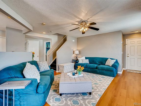 Welcome to the best townhome in the Southcreek. Shows pride of ownership with great upgrades. Refinished kitchen cabinets, titanium appliance set with transferable warranties, smart lights on main level, kitchen island and wood floors. Enjoy this bright and open floor plan with lots of natural light and gas fireplace in the living room. Upstairs you'll love the large loft, master suite and two additional bedrooms. You also get amenities not always available in a townhome: large private backyard that is fully fenced; backyard deck, grassy play area, two car finished garage and a corner lot. Central air and gas furnace will provide comfort year round. And last but not least, this home faces open space and the trails for Southcreek are right across the street.